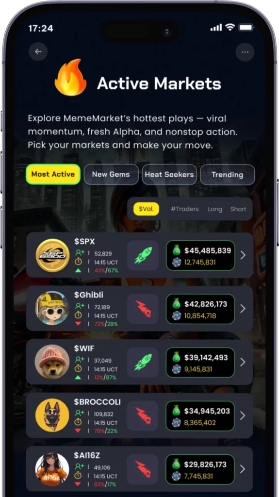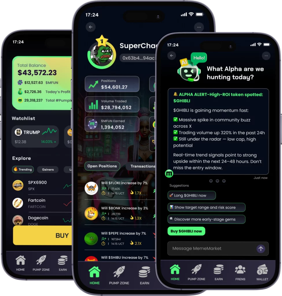 Whether you’re new or OG, MemeMarket makes it stupid easy to print on meme coins—no hassle, no stress, just Alpha on tap and gains that don’t quit.